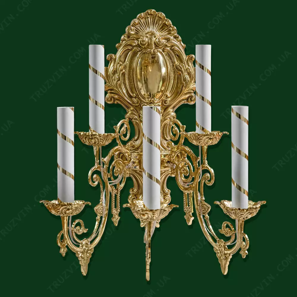 Велике церковне бра на п'ять свічок виготовлено висококваліфікованими майстрами на сучасному обладнанні. В якості основного матеріалу для виготовлення була використана латунь. Цей матеріал ідеально підходить для виготовлення подібних виробів, тому що при правильному догляді він надовго збереже свій первозданний зовнішній вигляд.