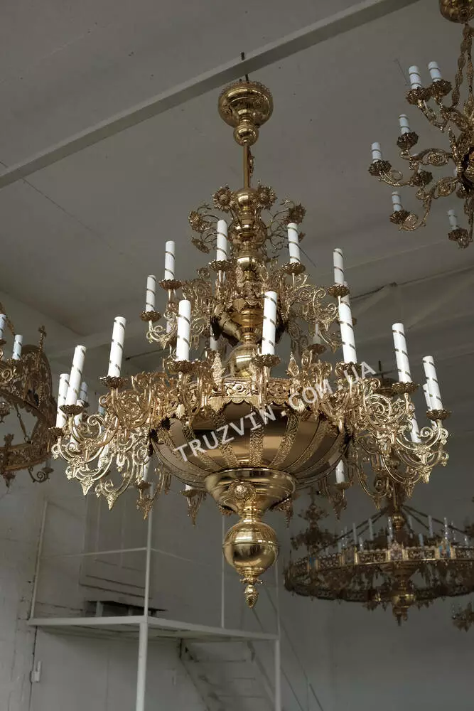 Дана модель панікадила складається з 2 яруса і 28 свічок. Виготовлено з високоякісного сплаву латуні, яка відрізняється тривалим терміном служби, при якому в максимальному ступені зберігаються всі первозданні естетичні характеристики.