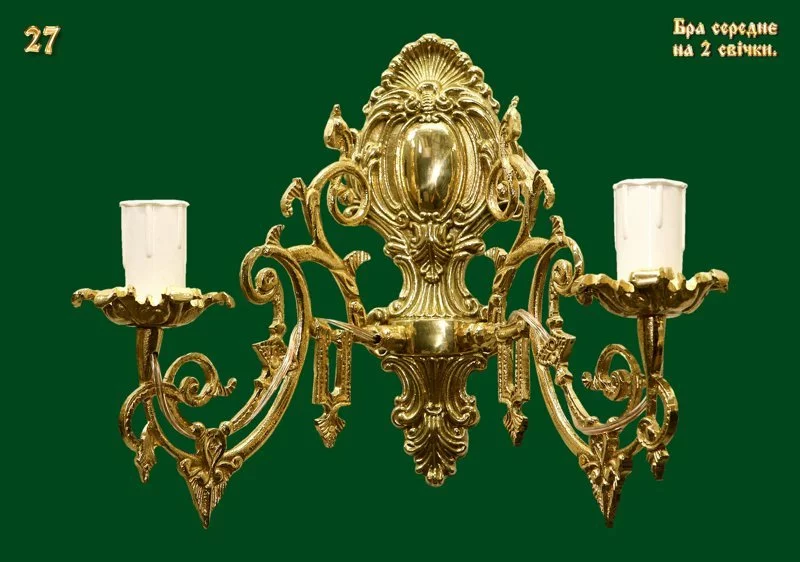 - свічники різних типів (підлогові, настільні, запрестольний і напрестольні семисвічники);