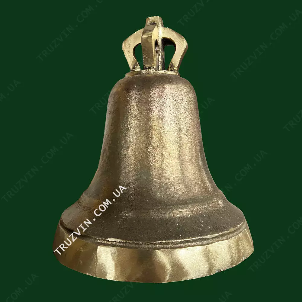 Малый церковный колокол, отлитый из латуни и украшен разнообразными декорирующими элементами.