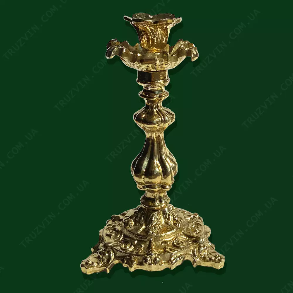 Церковный настольный подсвечник, который изготовлен из высококачественной латуни. Этот материал абсолютно устойчив к любым негативных факторам внешней среды, отличается высокой прочностью и долговечностью.