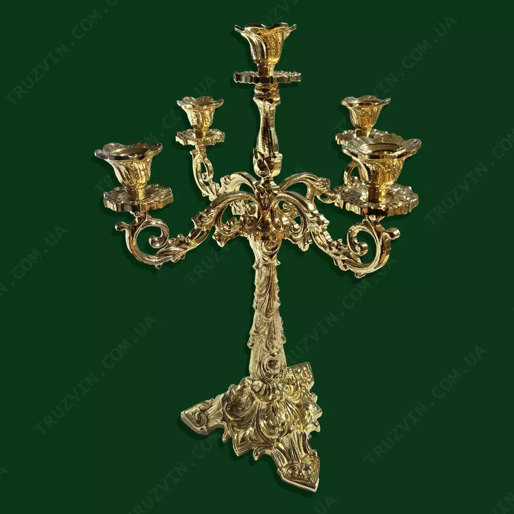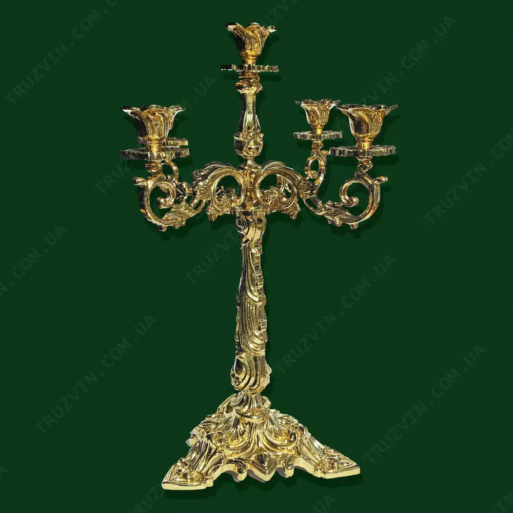 Церковный подсвечник изготовлен из высококачественной латуни, которая покрыта золотистой краской.