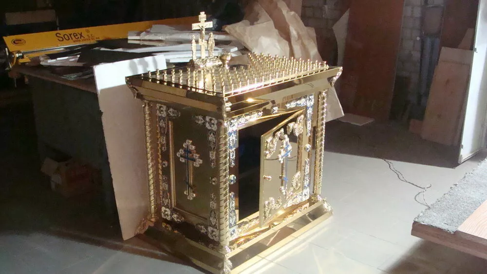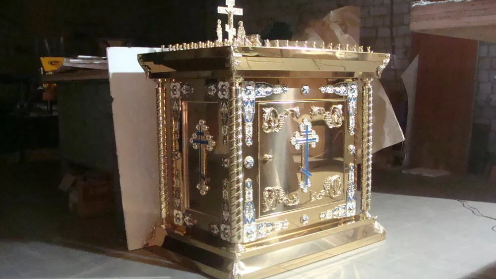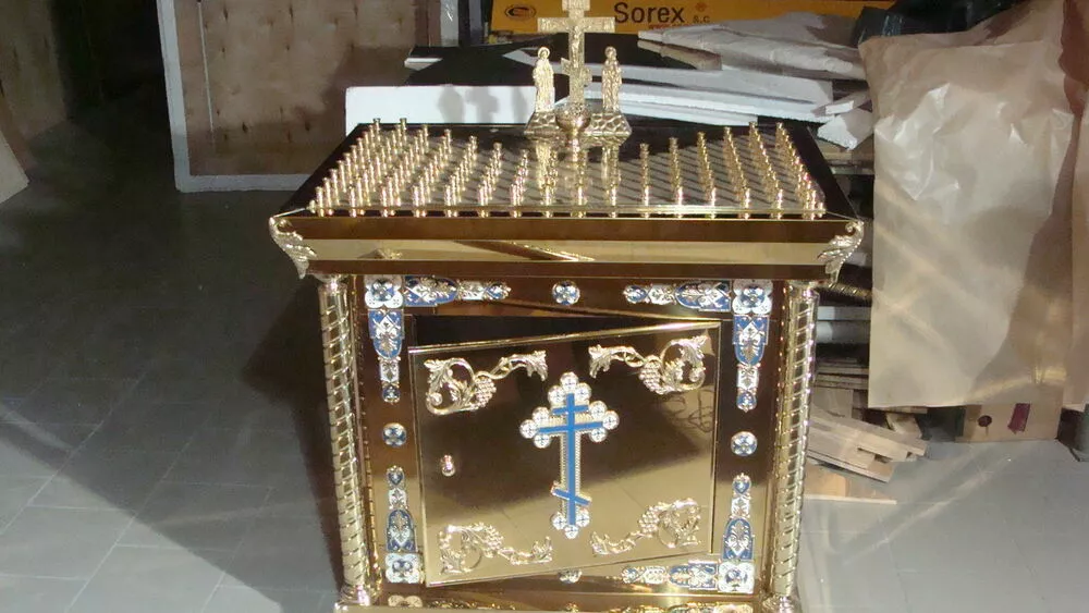 Для изготовления панихидных столов мы используем влагостойкую фанеру, булат, латунные накладки.