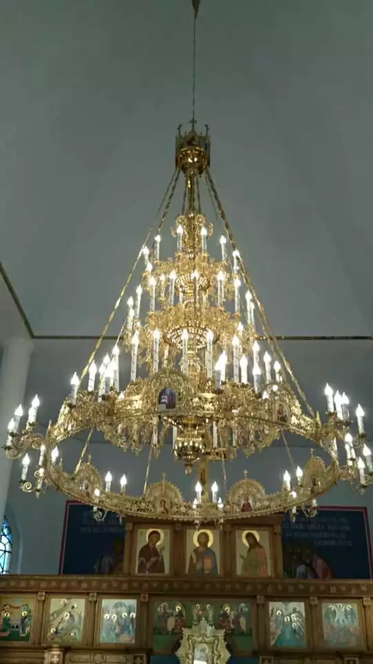 В нашем магазине можно купить готовые модели или заказать нестандартные церковные люстры по индивидуальным чертежам. Габариты, количество ярусов и свечей может быть разным. Паникадила изготавливаем из качественной латуни, отделка – напыление нитрит титана (булат).